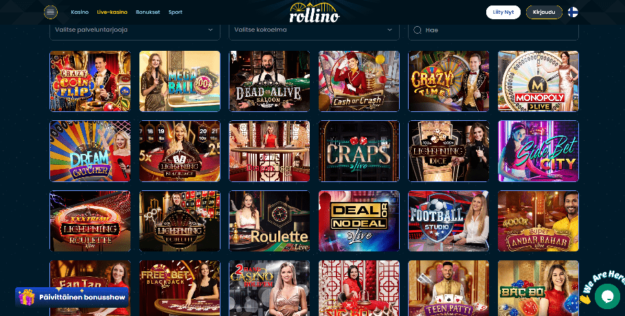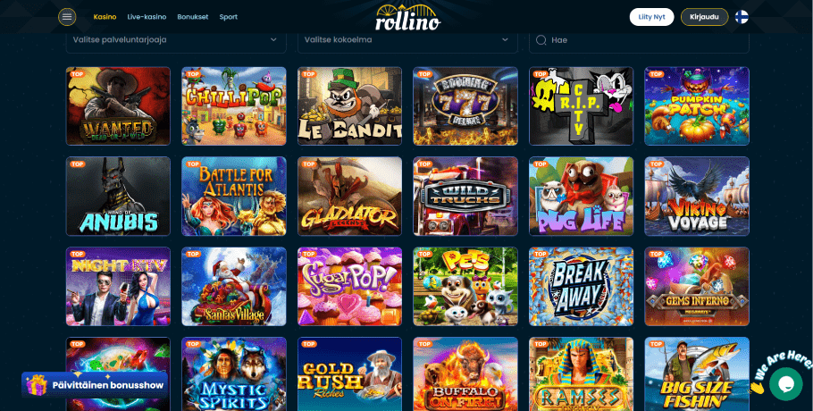 Rollinon laajan pelikokoelman ansiosta viihdyttävän asian löytäminen on helppoa. Minipelejä, kuten Aviator, Plinko, The Thimbles, Space XY, Penalty, Boxes ja muita, voidaan pelata satojen video-, jättipotti- ja Megaways-kolikkopelien kierrosten välillä.